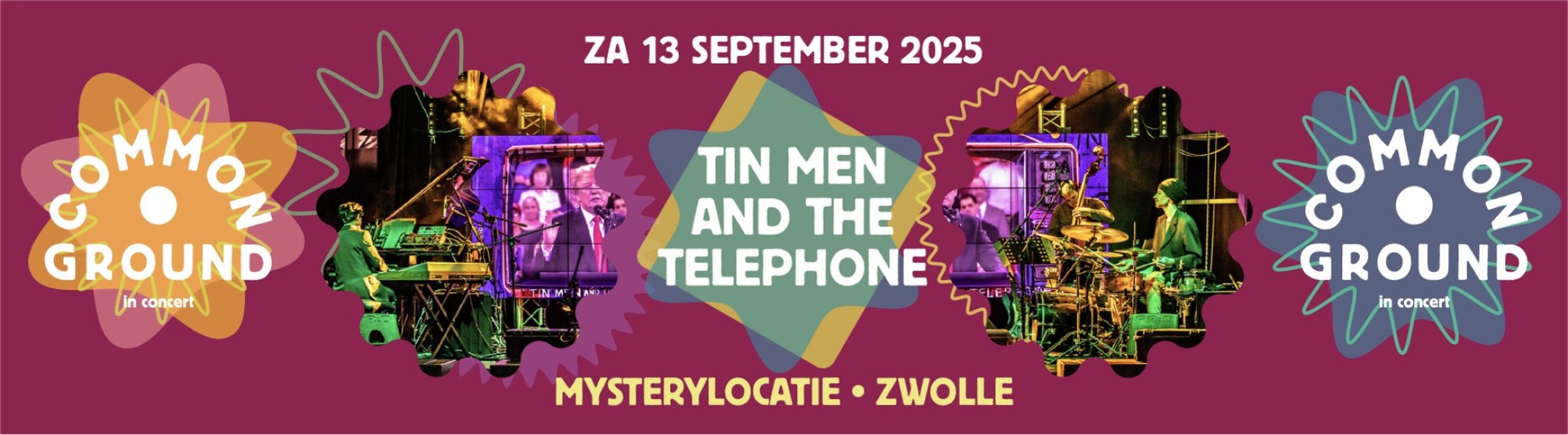 Een concert van Tin Men and The Telephone is een ervaring op zich met een slimme mix van beeld, geluid en social media. Als kijker en luisteraar word je meegezogen in een audiovisuele wereld waar absurdisme, humor en politiek engagement met een diepere boodschap elkaar op dynamische wijze afwisselen.