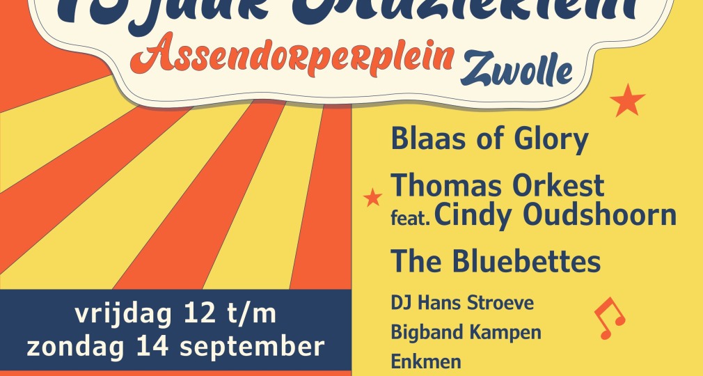 De muziektent op het Assendorperplein bestaat dit jaar 75 jaar en wordt groots gevierd! Het Jubieleumweekend is van 12 t/m 14 september.
